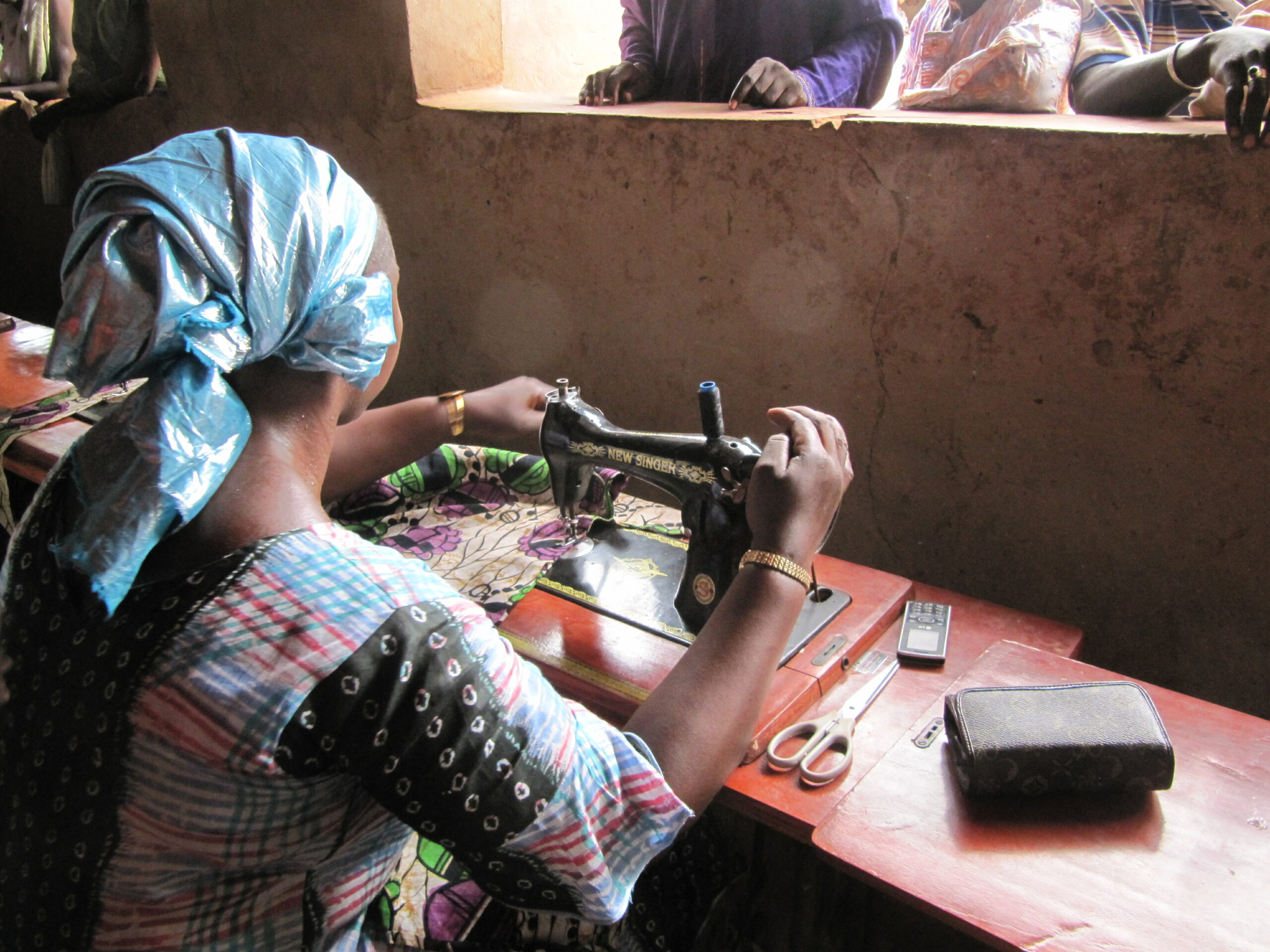 L’atelier constitue un espace de travail structuré, favorisant la transmission de compétences, la formation pratique et la création de vêtements, d’accessoires et de textiles utiles à la communauté comme à la vente locale.